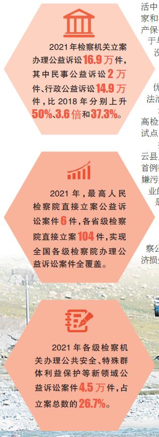 新領域的拓展使公益訴訟檢察工作邁上了新臺階。2020年,全國檢察機關對群眾反映強烈的新領域公益損害問題立案2.7萬件,公益訴訟檢察的“等”外領域探索,有些已在法律層面落地實施。比如未成年人保護法和個人信息保護法等,都專門設立了公益訴訟條款。