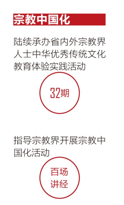 山東不斷創(chuàng)新探索宗教中國化的形式和內(nèi)容,教育引導(dǎo)宗教界人士和信教群眾培育和踐行社會主義核心價值觀、弘揚中華優(yōu)秀傳統(tǒng)文化,不斷增進“五個認同”。加強理論研究,發(fā)揮儒家文化發(fā)祥地和紅色文化富集地優(yōu)勢,成立山東省民族宗教研究會、山東宗教界優(yōu)秀傳統(tǒng)文化教育實踐基地,先后舉辦“儒學(xué)與宗教中國化”研討會、宗教中國化座談會等活動。強化教育引導(dǎo),陸續(xù)承辦了32期省內(nèi)外宗教界人士中華優(yōu)秀傳統(tǒng)文化教育體驗實踐活動,指導(dǎo)宗教界開展了宗教中國化“百場講經(jīng)”活動,常態(tài)化抓好宗教場所“四進”活動,努力推動宗教教義與齊魯文化有機融合,取得了春風(fēng)化雨、潤物無聲的良好效果。