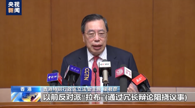 梁君彥說:“以前反對派‘拉布’(通過冗長辯論阻撓議事),把你拉到什么都做不了。反對派就是用所有不同的方法拖‘一國兩制’的后腿?!?/p>