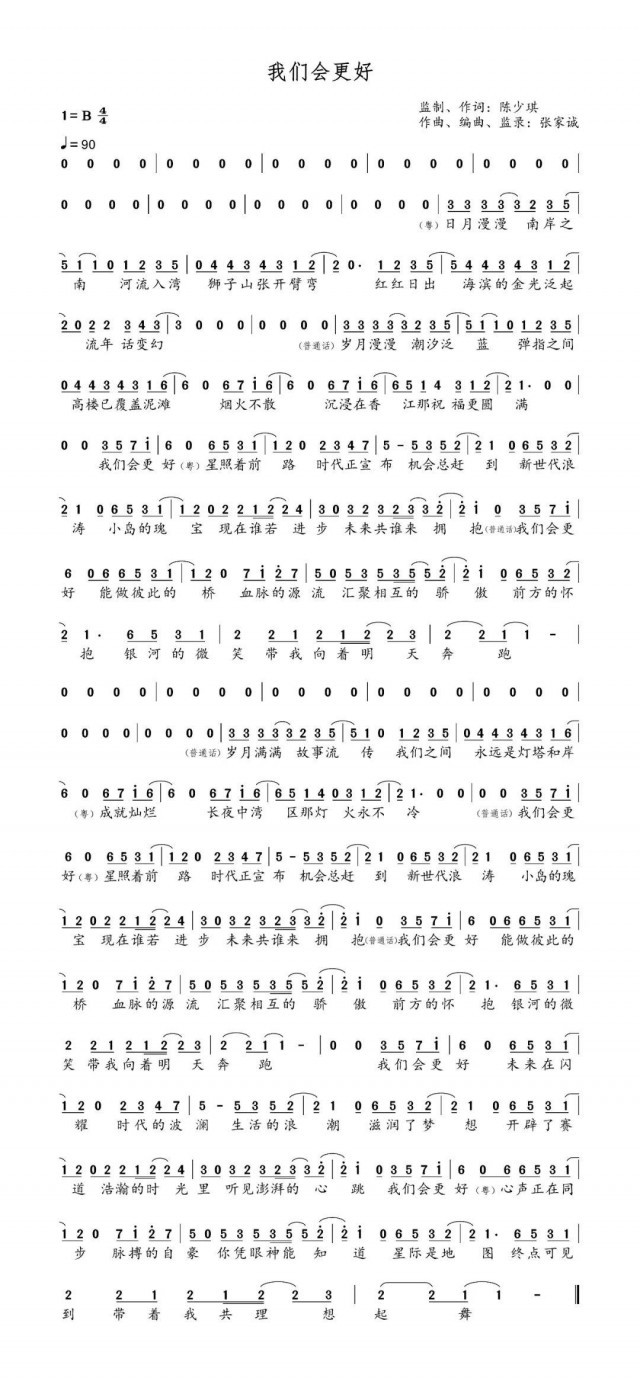 中央廣播電視總臺(tái)策劃制作的慶祝香港回歸祖國(guó)25周年主題歌曲《我們會(huì)更好》普通話粵語(yǔ)融合版本、粵語(yǔ)版本近日重磅發(fā)布上線。目前話題閱讀1.3億,播放超1300萬(wàn)。香港著名音樂人陳少琪任制作人及作詞,張家誠(chéng)作曲,香港歌手容祖兒、陳偉霆和內(nèi)地歌手譚維維、孫楠聯(lián)袂演唱。