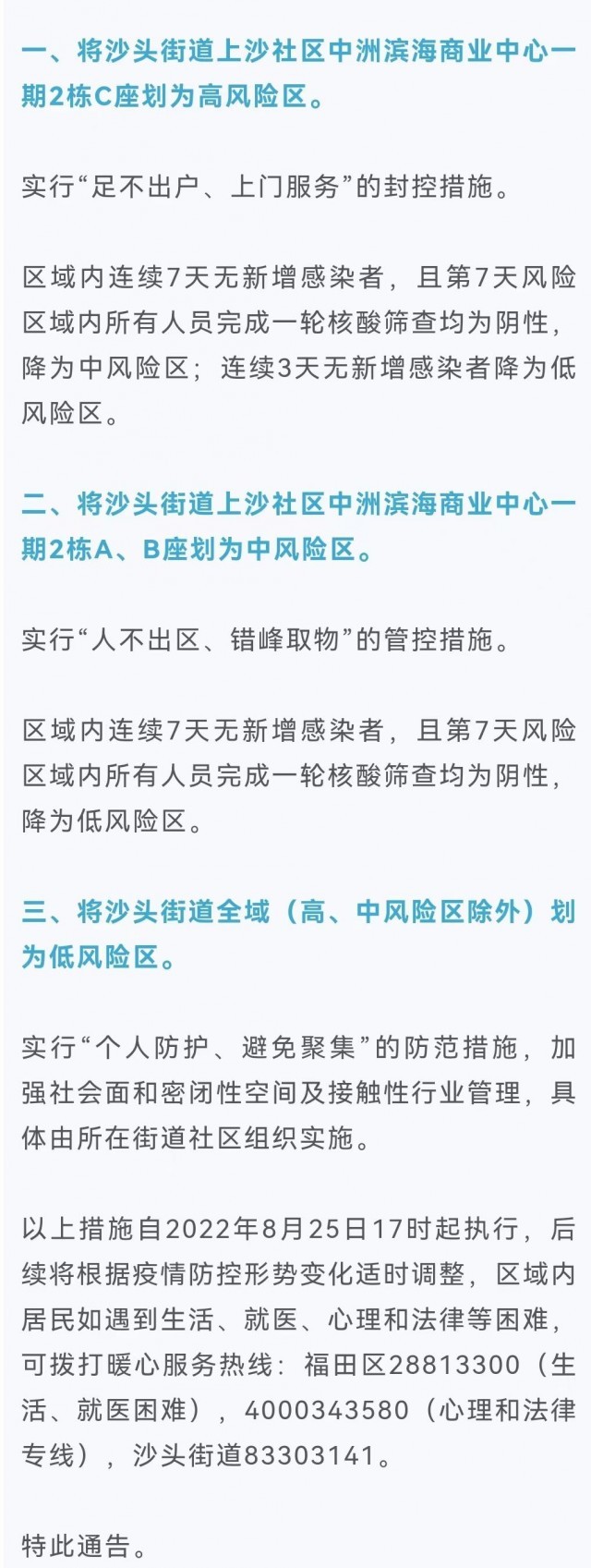 8月25日,廣東省深圳市福田區(qū)新型冠狀病毒肺炎疫情防控指揮部發(fā)布通告稱,根據(jù)當(dāng)前福田區(qū)疫情防控工作需要,按照國(guó)務(wù)院應(yīng)對(duì)新型冠狀病毒肺炎疫情聯(lián)防聯(lián)控機(jī)制綜合組《新型冠狀病毒肺炎疫情防控方案(第九版)》和《廣東省新冠肺炎本地疫情應(yīng)急處置方案(第五版)》相關(guān)規(guī)定,經(jīng)專家組研判,自2022年8月25日起,福田區(qū)在沙頭街道劃定高風(fēng)險(xiǎn)區(qū)、中風(fēng)險(xiǎn)區(qū)、低風(fēng)險(xiǎn)區(qū)如下: