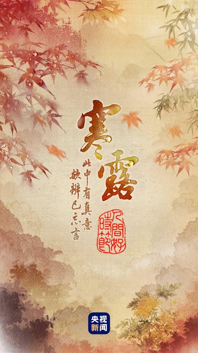 寒露,是秋天的第五個節(jié)氣。元代吳澄編著《月令七十二候集解》中說:“九月節(jié),露氣寒冷,將凝結(jié)也?!焙赌史Q“寒露”。