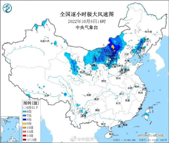 今天(10月8日)14時(shí)左右,內(nèi)蒙古中西部、寧夏等地已出現(xiàn)9級(jí)以上烈風(fēng)。隨著冷空氣繼續(xù)推進(jìn),9日至10日,華北、東北地區(qū)及黃淮、江淮等地也將先后出現(xiàn)5~6級(jí)偏北風(fēng),部分地區(qū)陣風(fēng)7~9級(jí),內(nèi)蒙古中部、華北北部局地可達(dá)10級(jí),尤其京津冀及河南、山東等局地大風(fēng)有一定極端性。