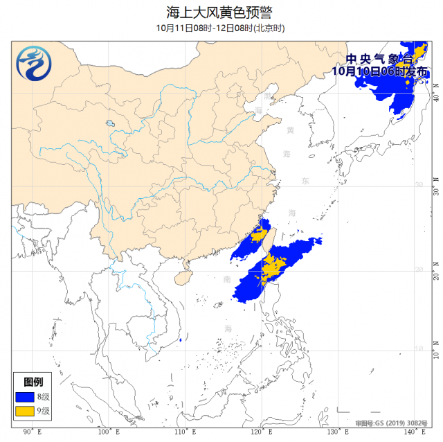 中央氣象臺(tái)10月10日06時(shí)繼續(xù)發(fā)布海上大風(fēng)黃色預(yù)警: