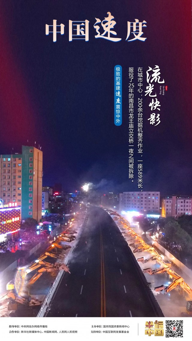 “基建狂魔”的速度有多快?眼睛再一閉一睜,8個小時過去了,589米長的立交橋拆沒了。