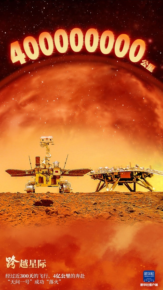 經(jīng)過近300天的飛行、4億公里的奔赴,“天問一號”成功“落火”;