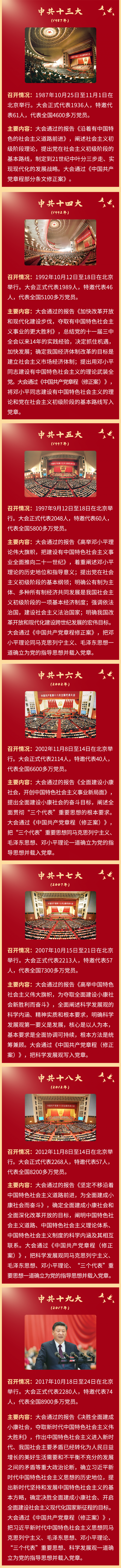 黨的二十大即將隆重開幕。此次會(huì)議是在全黨全國(guó)各族人民邁上全面建設(shè)社會(huì)主義現(xiàn)代化國(guó)家新征程、向第二個(gè)百年奮斗目標(biāo)進(jìn)軍的關(guān)鍵時(shí)刻召開的一次十分重要的大會(huì)。黨建網(wǎng)微平臺(tái)依據(jù)《中國(guó)共產(chǎn)黨一百年大事記》整理了黨的一大至十九大“極簡(jiǎn)史”,邀您一起學(xué)習(xí)了解中國(guó)共產(chǎn)黨歷次全國(guó)代表大會(huì)概況。