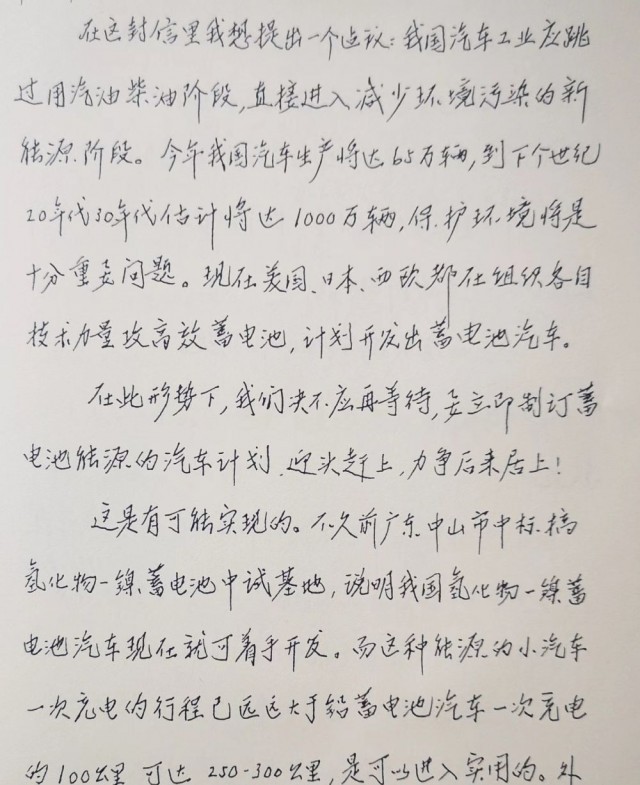 信中說,“在此形勢下,我們絕不應(yīng)再等待,要立即制訂蓄電池能源的汽車計劃,迎頭趕上,力爭后來居上?!?/p>