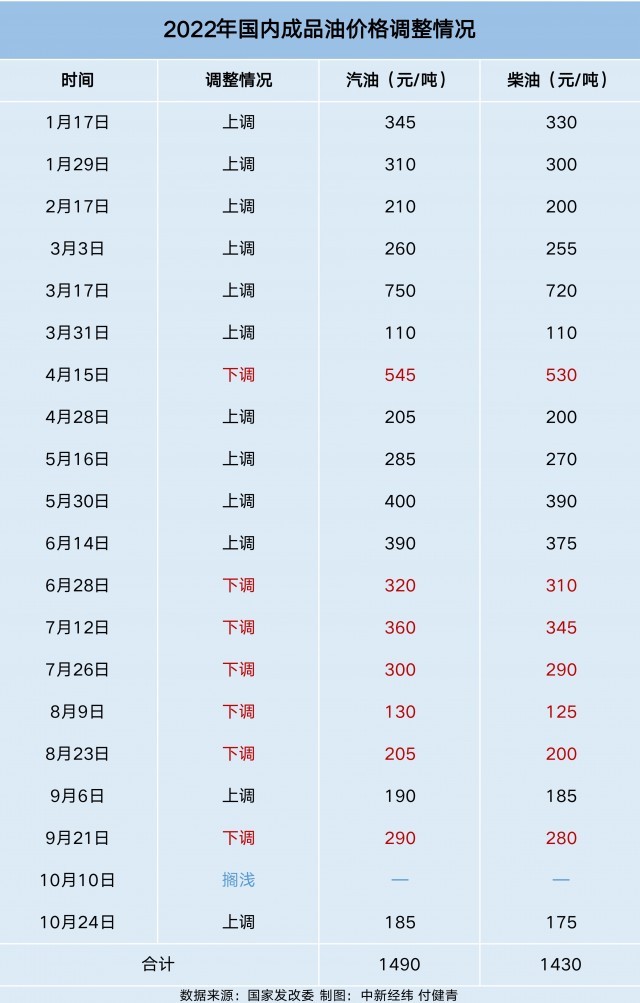 中新經(jīng)緯梳理,今年以來(lái),國(guó)內(nèi)成品油價(jià)格已經(jīng)進(jìn)行了20輪調(diào)整,呈現(xiàn)“十二漲七跌一擱淺”格局,汽油價(jià)格累計(jì)上調(diào)1490元/噸,柴油價(jià)格累計(jì)上調(diào)1430元/噸。