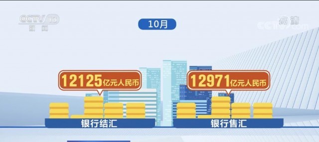 國家外匯管理局最新數(shù)據(jù)顯示,10月,銀行結(jié)匯12125億元人民幣,售匯12971億元人民幣。10月,銀行代客涉外收入30991億元人民幣,對外付款31597億元人民幣。