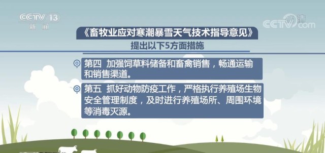 央視網(wǎng)消息:記者12月1日從農(nóng)業(yè)農(nóng)村部了解到,為了應(yīng)對(duì)寒潮天氣,保障畜禽安全過冬,最大程度降低災(zāi)害損失,農(nóng)業(yè)農(nóng)村部畜牧獸醫(yī)局組織畜牧生產(chǎn)專家編制了《畜牧業(yè)應(yīng)對(duì)寒潮暴雪天氣技術(shù)指導(dǎo)意見》,提出5方面措施指導(dǎo)生產(chǎn)。