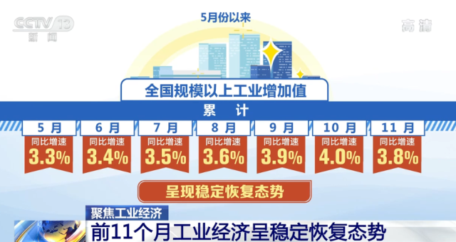 前11個(gè)月工業(yè)經(jīng)濟(jì)呈穩(wěn)定恢復(fù)態(tài)勢(shì) 有力支撐了國(guó)民經(jīng)濟(jì)平穩(wěn)運(yùn)行