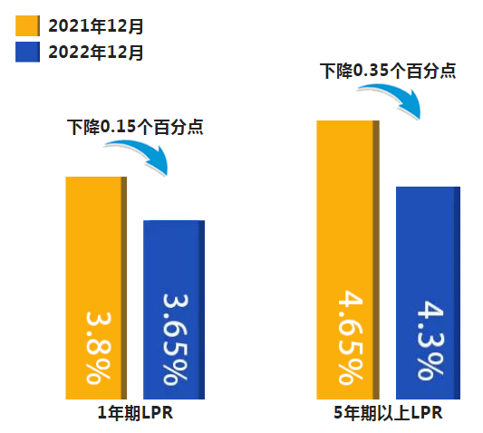 2022年11月,金融機(jī)構(gòu)新發(fā)放個(gè)人住房貸款利率為4.27%,較2021年12月下降1.36個(gè)百分點(diǎn)。