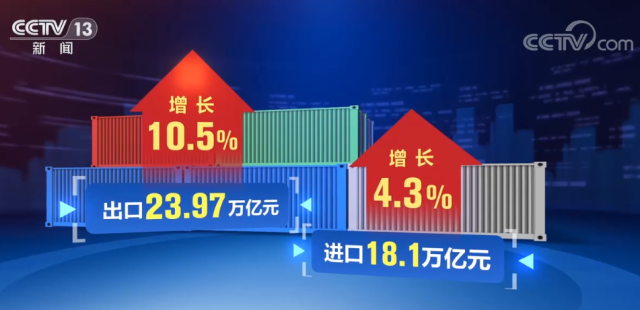 海關(guān)統(tǒng)計顯示,2022年,我國外貿(mào)進出口總值42.07萬億元,比2021年增長7.7%。其中,出口23.97萬億元,增長10.5%;進口18.1萬億元,增長4.3%。