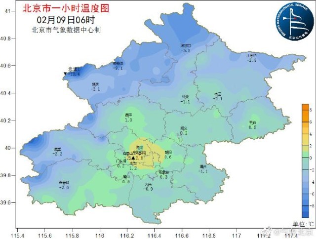 2月9日6時45分,北京南郊觀象臺氣溫為0℃,地面溫度-1.7℃。目前北京市城區(qū)氣溫在0~2℃之間,受降雪天氣影響,預計今天白天最高氣溫只有1℃,降溫明顯,體感陰冷,外出時還需注意防寒保暖,謹防感冒和心腦血管疾病的發(fā)生。