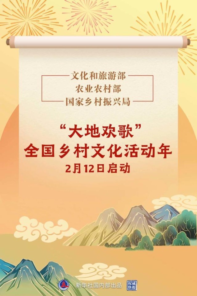 為深入實(shí)施鄉(xiāng)村振興戰(zhàn)略,全面推進(jìn)鄉(xiāng)村文化振興,文化和旅游部、農(nóng)業(yè)農(nóng)村部、國(guó)家鄉(xiāng)村振興局2月12日在湖北省武漢市啟動(dòng)“大地歡歌”全國(guó)鄉(xiāng)村文化活動(dòng)年。