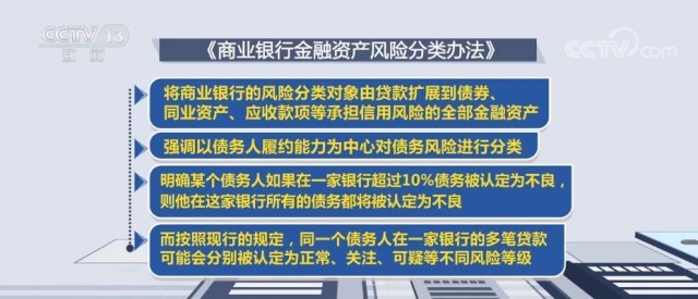 辦法還要求商業(yè)銀行應(yīng)至少每季度對全部金融資產(chǎn)進(jìn)行一次風(fēng)險分類,有效防范化解信用風(fēng)險。這一辦法將從今年7月1日起施行。