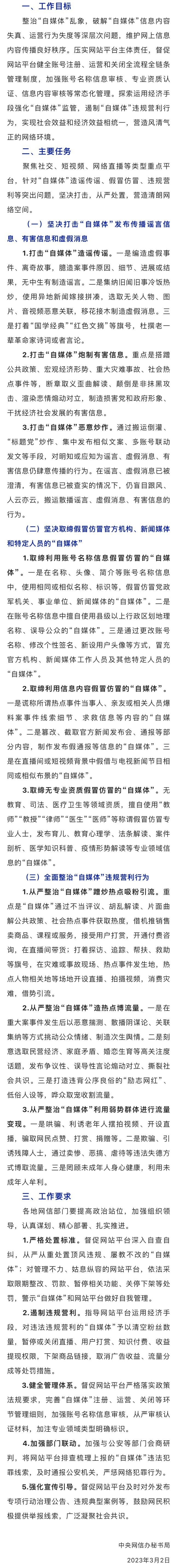 中央網(wǎng)信辦部署“清朗·從嚴(yán)整治‘自媒體’亂象”專(zhuān)項(xiàng)行動(dòng)