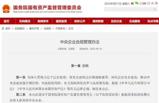 2022年,國資委印發(fā)《中央企業(yè)合規(guī)管理辦法》。管理辦法在充分借鑒世界一流企業(yè)先進經(jīng)驗的基礎(chǔ)上,明確提出中央企業(yè)應(yīng)當(dāng)結(jié)合實際設(shè)立首席合規(guī)官,不新增領(lǐng)導(dǎo)崗位和職數(shù),由總法律顧問兼任,對企業(yè)主要負(fù)責(zé)人負(fù)責(zé),領(lǐng)導(dǎo)合規(guī)管理部門組織開展相關(guān)工作,指導(dǎo)所屬單位加強合規(guī)管理。(記者王希)