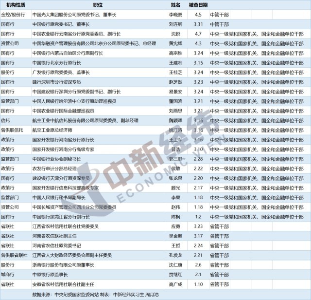反腐重拳出擊!金融系統(tǒng)年內(nèi)至少29人被查,9人出自國(guó)有行