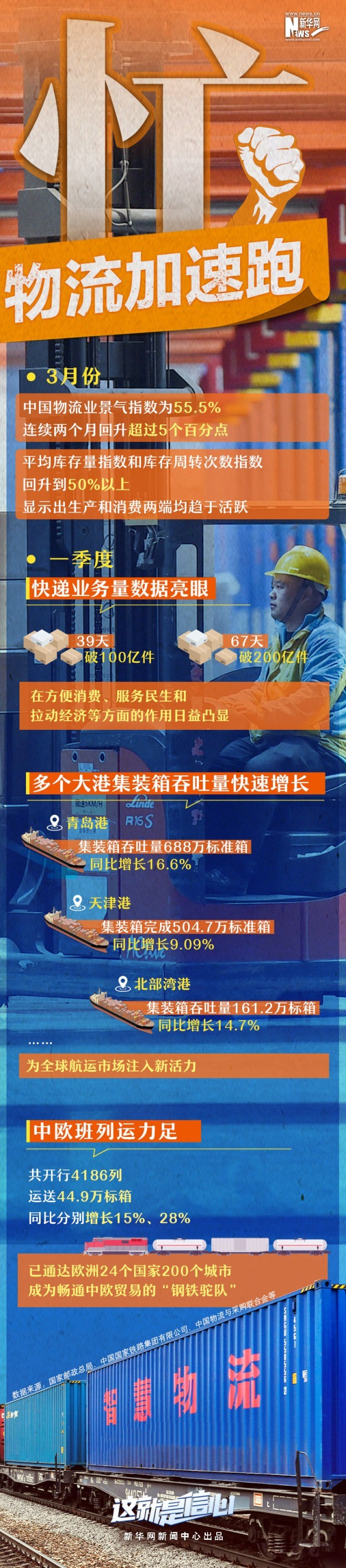 物流是國民經(jīng)濟(jì)運(yùn)行的血脈。1-3月,快遞業(yè)務(wù)、中歐班列、集裝箱吞吐量等多個維度的物流數(shù)據(jù)持續(xù)向好,共同交織出了繁忙中國的經(jīng)濟(jì)加速度。