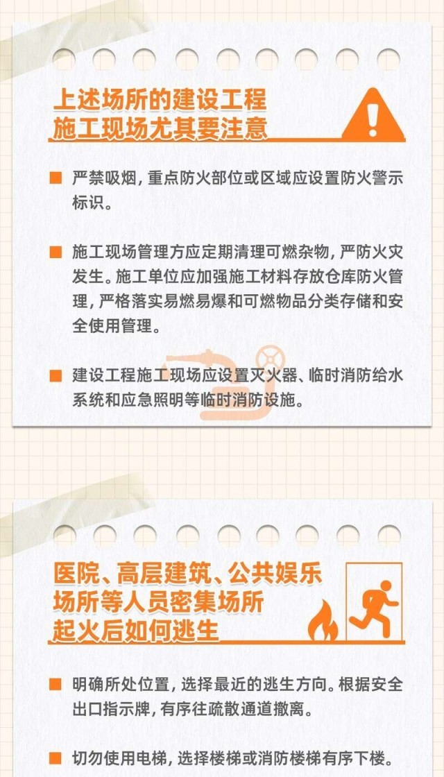 當你走進KTV、高層寫字樓、醫(yī)院等人員密集場所時,是否留心觀察過消防通道的位置?日常經(jīng)過的住宅樓道內(nèi)是否張貼了消防要求?生命安全無小事,著眼細處才能防患于未“燃”。這里有一份火災(zāi)高風險區(qū)域場所的消防小貼士,請查收~