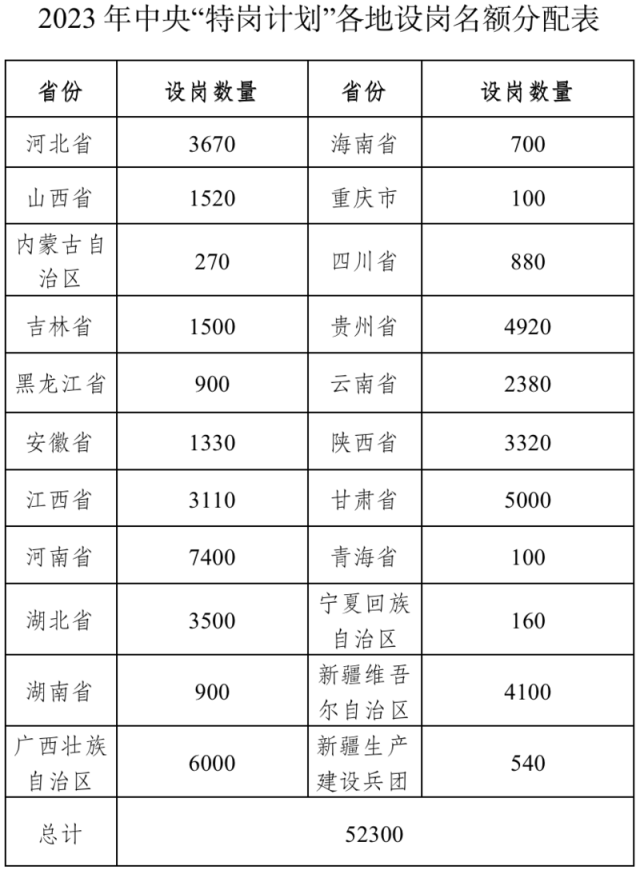 中國青年報客戶端北京4月25日電(中青報·中青網記者 樊未晨)記者今天從教育部獲悉,教育部辦公廳、財政部辦公廳近日聯合印發(fā)《關于做好2023年農村義務教育階段學校教師特設崗位計劃實施工作的通知》,全國計劃招聘特崗教師52300名。