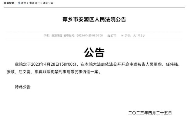 江西南昌豫章書(shū)院非法拘禁刑事附帶民事訴訟一案4月28日繼續(xù)開(kāi)庭審理