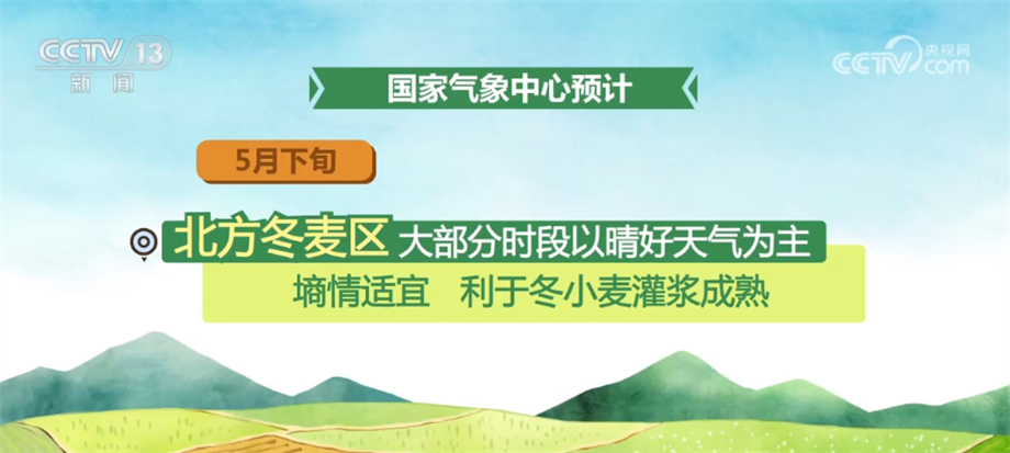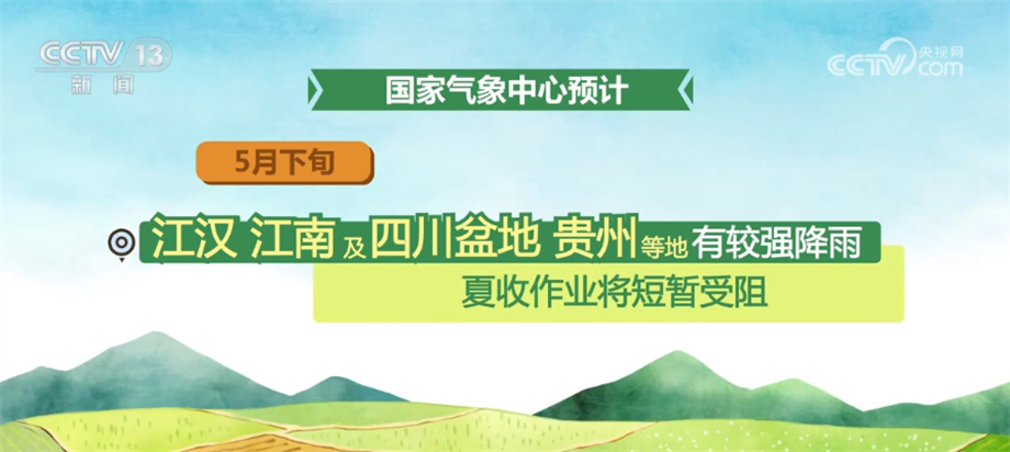 國家氣象中心預(yù)計(jì),5月下旬,北方冬麥區(qū)大部分時(shí)段以晴好天氣為主,墑情適宜,利于冬小麥灌漿成熟;江漢、江南及四川盆地、貴州等地有較強(qiáng)降雨,夏收作業(yè)將短暫受阻;江淮大部天氣較好,適宜夏收。