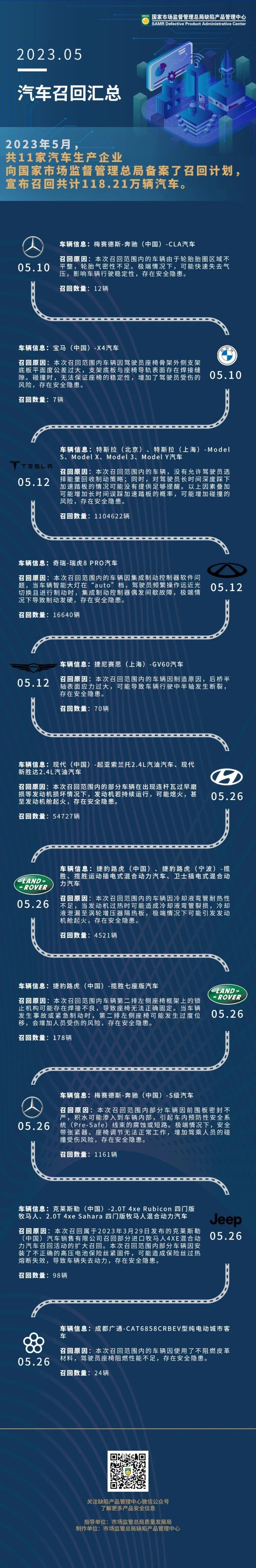 市場(chǎng)監(jiān)管總局:今年5月,11家車(chē)企共召回汽車(chē)超118萬(wàn)輛