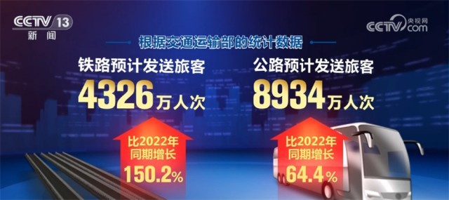 端午假期,全國(guó)鐵路、公路、水路、民航預(yù)計(jì)共發(fā)送旅客14047萬人次,比2022年同期增長(zhǎng)89.1%。其中,鐵路預(yù)計(jì)發(fā)送旅客4326萬人次,比2022年同期增長(zhǎng)150.2%;公路預(yù)計(jì)發(fā)送旅客8934萬人次,比2022年同期增長(zhǎng)64.4%;水路預(yù)計(jì)發(fā)送旅客253萬人次,比2022年同期增長(zhǎng)99.3%;民航預(yù)計(jì)發(fā)送旅客534萬人次,比2022年同期增長(zhǎng)287%。