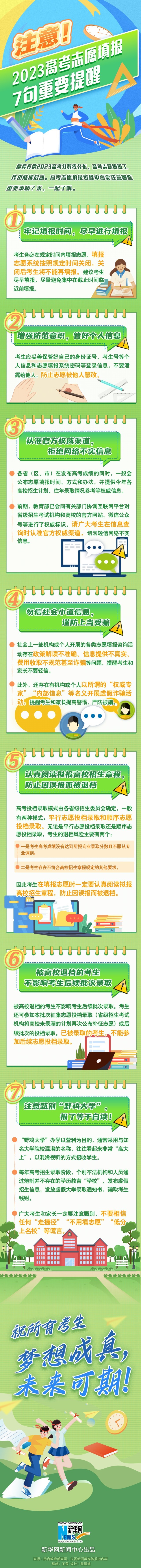 隨著各地2023高考分?jǐn)?shù)線公布,高考志愿填報工作也陸續(xù)啟動。高考志愿填報過程中,考生和家長們需要注意哪些事情?這7句重要提醒請收下。