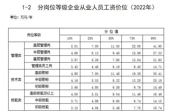 分崗位等級(jí)企業(yè)從業(yè)人員工資價(jià)位(2022年)。來(lái)自人社部網(wǎng)站
