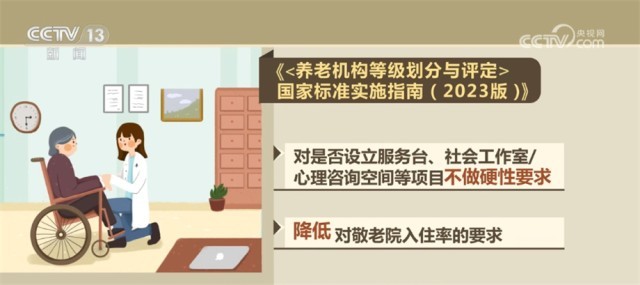 此次發(fā)布的指南包括環(huán)境、設施設備、運營管理、服務等多項內容,與2020年發(fā)布的《<養(yǎng)老機構等級劃分與評定>國家標準實施指南》(試行)相比,在框架、體例整體保持一致的前提下,刪除了一些可操作性不強以及非養(yǎng)老機構必備的條件,對各地反映強烈的設有通行導向標識、建筑主要出入口進深要求、公共洗浴空間門開啟凈寬、廚師證、會計從業(yè)資格等項目,由一票否決項降級為普通評分項,修改后可以降低等級評定的準入門檻,使得更多的養(yǎng)老機構特別是老舊設施、農(nóng)村設施有機會參與評定。