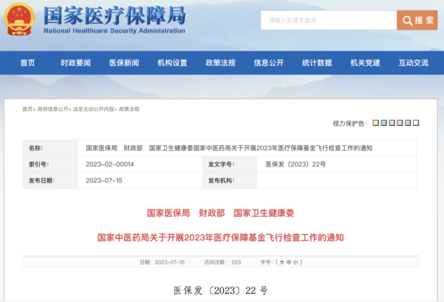 國(guó)家醫(yī)保局、財(cái)政部、國(guó)家衛(wèi)生健康委、國(guó)家中醫(yī)藥局14日聯(lián)合印發(fā)《關(guān)于開展2023年醫(yī)療保障基金飛行檢查工作的通知》,將在全國(guó)范圍內(nèi)組織開展2023年醫(yī)?;痫w行檢查。