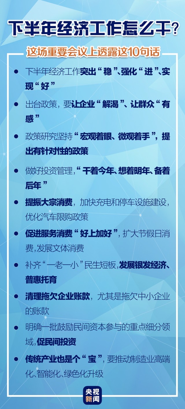 下半年經(jīng)濟怎么干?這場重要會議上透露這10句話