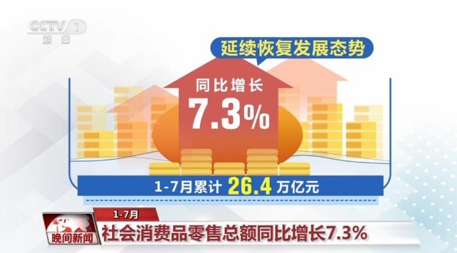 1—7月社會(huì)消費(fèi)品零售總額同比增長7.3%