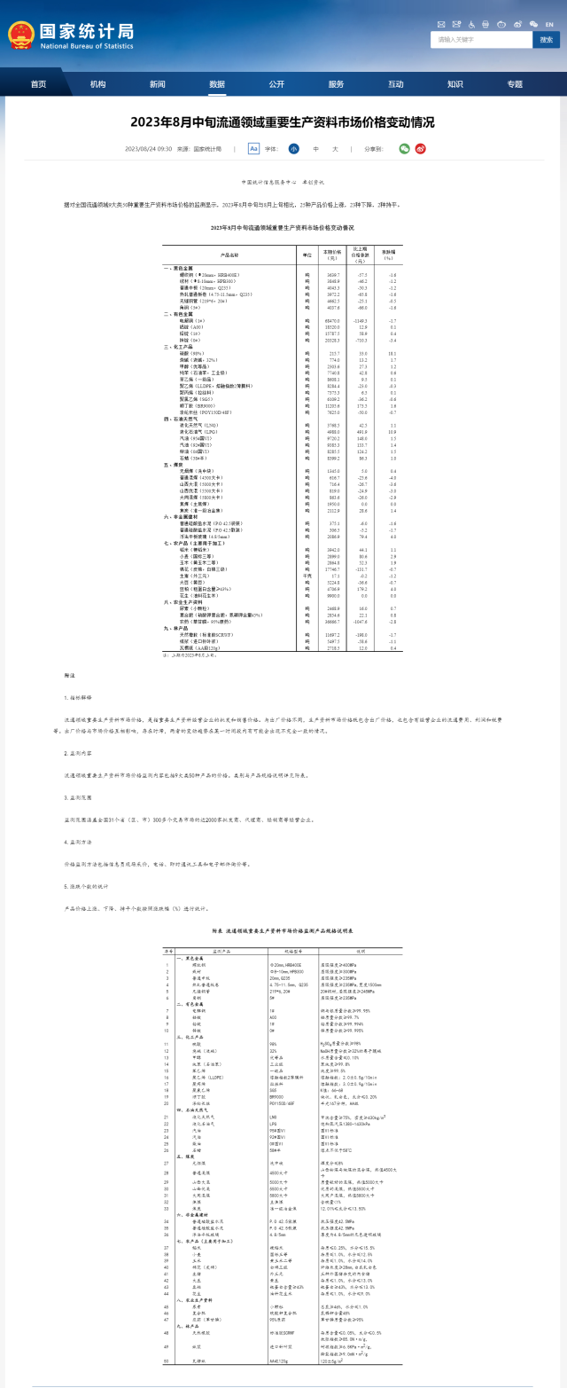 央視網(wǎng)消息:國家統(tǒng)計(jì)局?jǐn)?shù)據(jù)顯示,2023年8月中旬與8月上旬相比,25種產(chǎn)品價格上漲,23種下降,2種持平。其中,生豬(外三元)價格報17.1元/千克,環(huán)比下降1.2%。