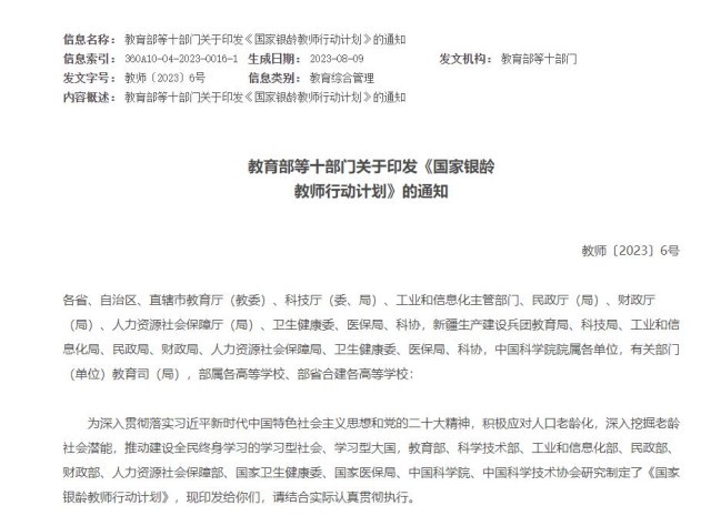 教育部等十部門:經(jīng)過3年左右,全國銀齡教師隊(duì)伍總量力爭達(dá)12萬人左右