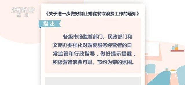 央視網(wǎng)消息:市場監(jiān)管總局、民政部和中央文明辦近日聯(lián)合印發(fā)《通知》,通過強(qiáng)化部門聯(lián)動,推進(jìn)制止婚宴餐飲浪費(fèi)工作。