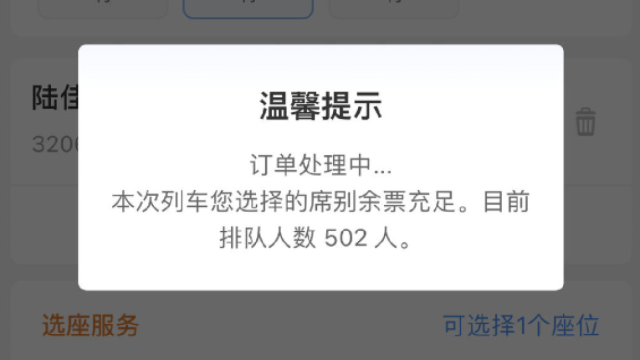 對于沒有買到票的用戶,客服表示,今年搶票較往年確實更難些,建議立即加入候補(bǔ),等待其他用戶改簽或退票。