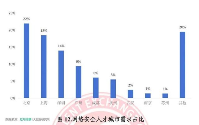 根據(jù)國家智慧教育公共服務(wù)平臺(tái)數(shù)據(jù),2023年網(wǎng)絡(luò)安全相關(guān)本科專業(yè)(信息安全、網(wǎng)絡(luò)空間安全、網(wǎng)絡(luò)安全與執(zhí)法)畢業(yè)生規(guī)模約為 1.45 萬人。總體上,網(wǎng)絡(luò)安全產(chǎn)業(yè)人才供需關(guān)系為供不應(yīng)求?!秷?bào)告》稱,根據(jù)拉勾招聘平臺(tái)數(shù)據(jù)顯示,最新網(wǎng)絡(luò)安全人才需求排名前六的城市分別是北京、上海、深圳、廣州、成都和杭州,占據(jù)市場總需求的75%左右。
