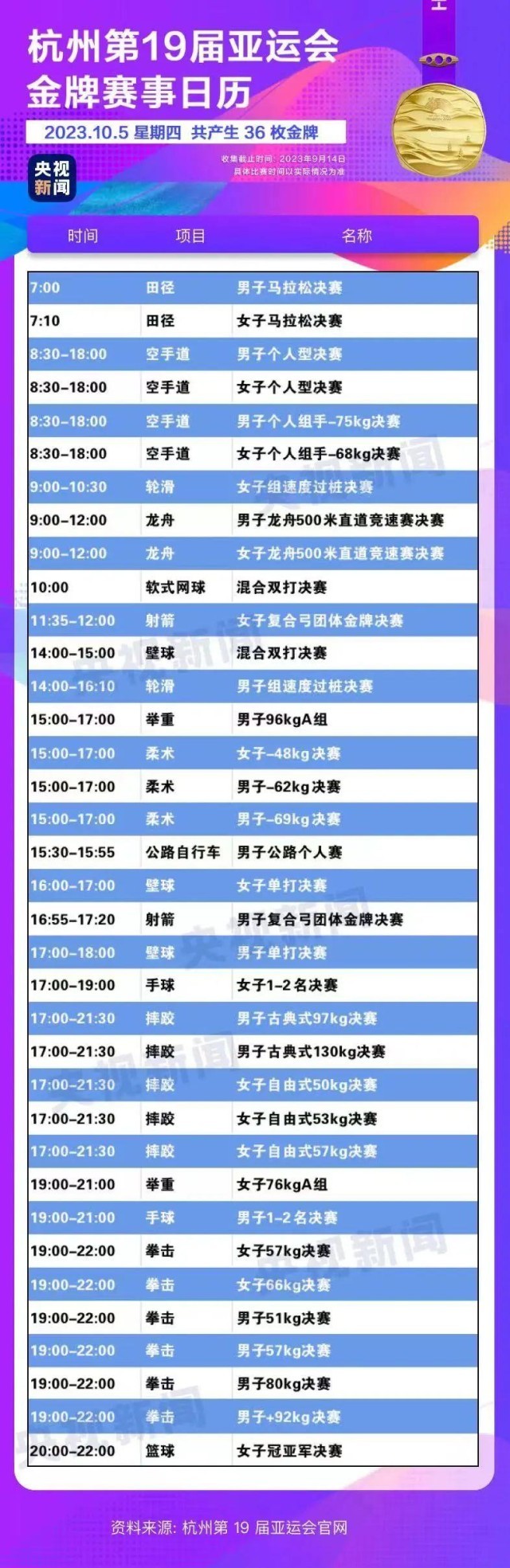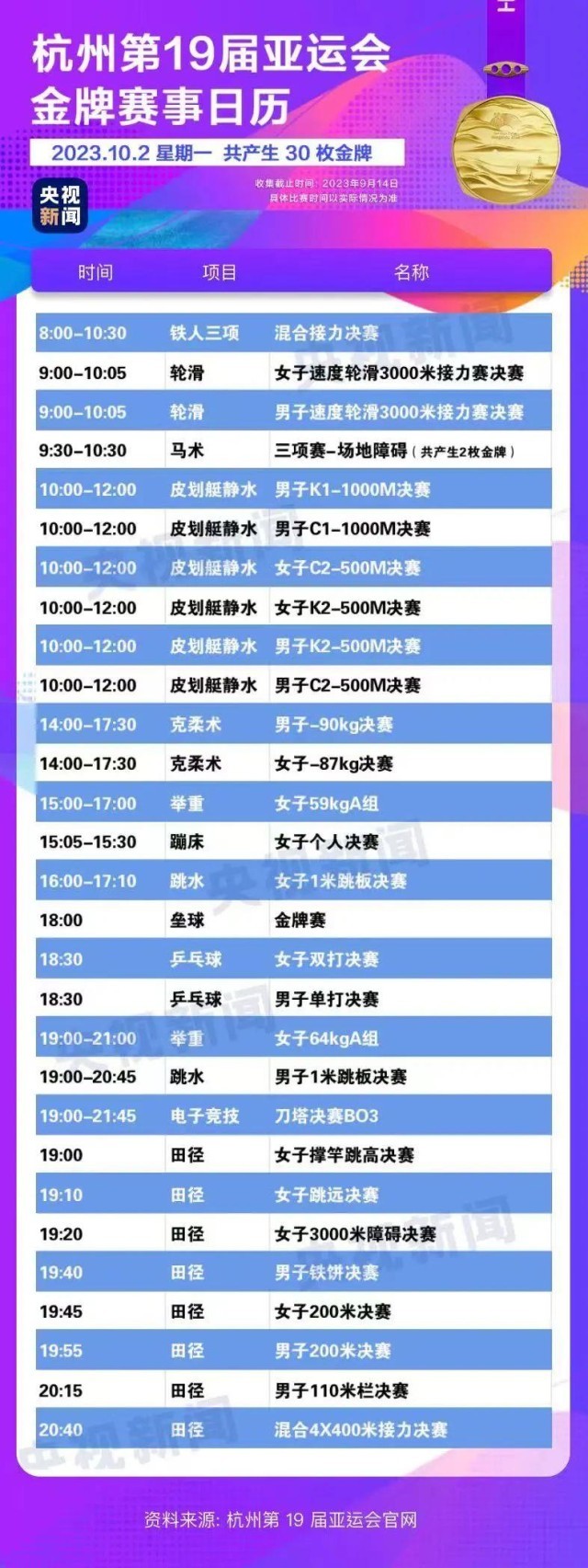 最后,小編還為你準備了一份杭州亞運會金牌賽事日歷,日歷里包含所有481枚金牌產生的時間。滑動手指,看看你關注的比賽在哪天舉行。