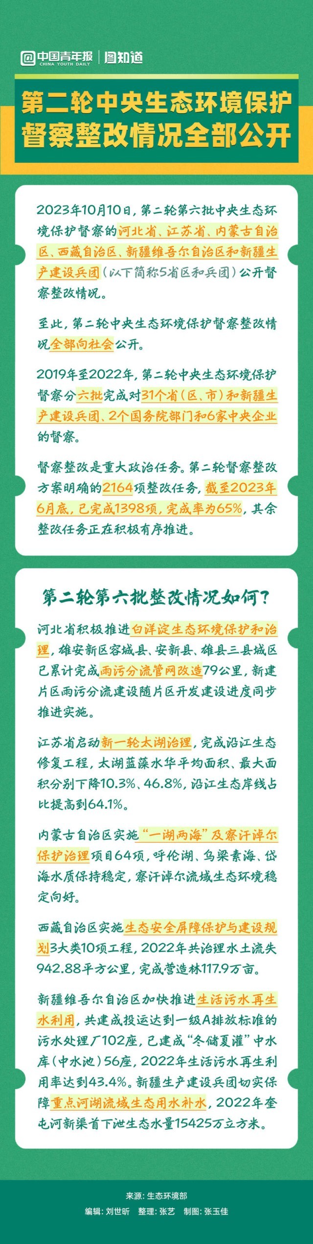 今年10月10日,第二輪第六批中央生態(tài)環(huán)境保護(hù)督察公開督察整改情況。至此,第二輪中央生態(tài)環(huán)境保護(hù)督察整改情況全部向社會(huì)公開。最新一批公布的整改情況如何?一圖讀懂。
