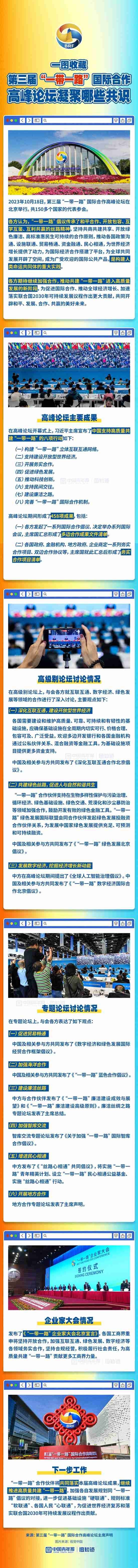 2023年10月18日,第三屆“一帶一路”國際合作高峰論壇在北京舉行,共150多個國家的代表參會。這次論壇上凝聚了與會各方哪些共識?一圖收藏