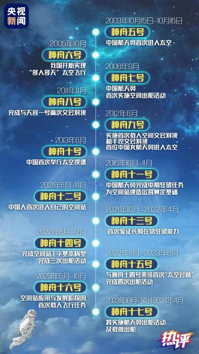 飛天20載,所向皆星河。從神五到神十七,從首次太空飛行到長(zhǎng)期駐守空間站,20年間,我國(guó)載人航天事業(yè)實(shí)現(xiàn)跨越式發(fā)展,載人航天工程發(fā)射任務(wù)實(shí)現(xiàn)30戰(zhàn)30捷。有太多高光時(shí)刻值得銘記,每一步都夯實(shí)基礎(chǔ),每一步都標(biāo)定未來。