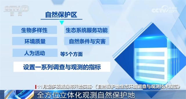 生態(tài)環(huán)境部發(fā)布的《自然保護(hù)地生態(tài)環(huán)境調(diào)查與觀測技術(shù)規(guī)范》將從11月1日起施行?!都夹g(shù)規(guī)范》對自然保護(hù)區(qū)的生物多樣性、生態(tài)系統(tǒng)服務(wù)功能、環(huán)境質(zhì)量、自然條件與災(zāi)害和人為活動等5個方面設(shè)置了一系列調(diào)查與觀測的指標(biāo),將綜合利用“天空地”各種觀測技術(shù)手段,形成集“遙感監(jiān)測、地面觀測與實(shí)地調(diào)查、資料收集與調(diào)查統(tǒng)計”等多種方法相結(jié)合的全方位、立體化調(diào)查與觀測技術(shù)體系。
