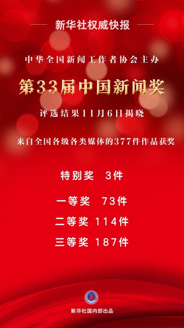 由中華全國新聞工作者協(xié)會主辦的第33屆中國新聞獎評選結(jié)果11月6日揭曉。