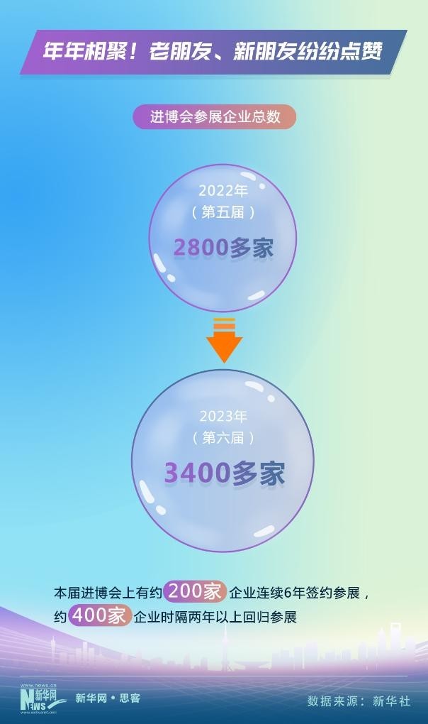進(jìn)博會(huì)這個(gè)充滿機(jī)遇的舞臺(tái)迎接了一批又一批參展企業(yè)。據(jù)悉,本屆進(jìn)博會(huì)上,超過3400家參展企業(yè)在昵稱為“四葉草”的國(guó)家會(huì)展中心(上海)亮相,大大超過了上屆2800多家的規(guī)模?!芭笥讶Α辈粩鄶U(kuò)大的同時(shí),一些“老伙伴”對(duì)進(jìn)博會(huì)興趣不減。數(shù)據(jù)統(tǒng)計(jì)顯示,約200家企業(yè)連續(xù)6年簽約參展,約400家企業(yè)時(shí)隔兩年以上回歸參展,再次續(xù)寫它們的“進(jìn)博緣分”。