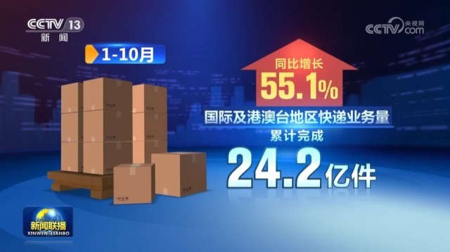 隨著我國主要快遞企業(yè)布局國際寄遞網(wǎng)絡(luò),加快海外倉建設(shè),新開通多條國際全貨機航線,通過為消費者提供全鏈路跨境電商寄遞服務(wù),郵政快遞業(yè)在促進產(chǎn)品跨境流動中的作用明顯增強,國際供應(yīng)鏈產(chǎn)業(yè)鏈保障水平進一步提升。1—10月,國際及港澳臺地區(qū)快遞業(yè)務(wù)量累計完成24.2億件,同比增長55.1%。